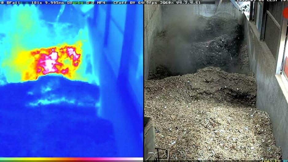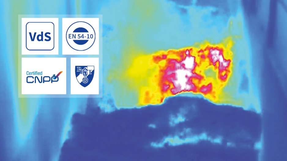 Mobotix TR 技术能够探测到肉眼不可见的阴燃火灾。这类火灾会导致环境温度突变,从而在造成大规模损失前被及时发现与处置。另一大核心优势是:热成像技术可在数百米距离内工作,意味着其同样能够对大面积区域及难以进入的区域实施监控。右侧的热成像画面清晰显示了危险的温度升高。配备 TR 技术的 MOBOTIX 摄像机能够持续检测和测量整个图像(或多达 20 个不同的曝光窗口)内的所有温度范围,并在温度达到用户设定的限值(例如 60°C/140°F)时立即发出警报。